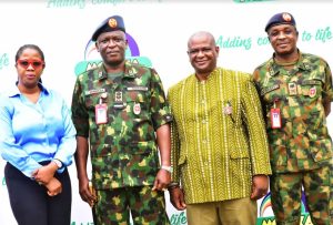 From Left: Ifeoma Okoruen, Head, Human Resource and Admin., Mouka Limited; with Air Vice Marshal Adeniyi Herbert Ameshinlola, Commandant, Nigerian Armed Forces Resettlement Centre (NAFRC), Oshodi; Dimeji Osingunwa, Chief Commercial Officer, Mouka Limited; and Major General Emmanuel Anaryu, Officer, NAFRC; during the courtesy visit of the Commandant and his team from NAFRC to Mouka Limited’s Head Office in Lagos, on Tuesday, 28th November, 2023.[/caption]